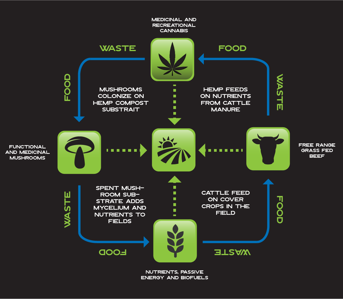 Our closed-loop system integrates four symbiotic processes where each system's output feeds another, eliminating waste and external inputs.